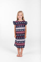 Glory to the newborn King! For the girl who loves a dreamy nightgown, this one is as meaningful as it is beautiful. Our King of Kings Nightgown wraps her in a joyful Nordic print—crowns, manger icons, angels, lambs, stars, and the words KING OF KINGS—so the truth you celebrate stays close all season long. Lightweight and smooth with a flowy A-line shape, it’s designed for cozy sleep and twirl-worthy mornings. And with the right-arm Scripture label (Luke 2:1–20), bedtime becomes a simple way for parents and grandparents to share the story of Jesus’ birth.