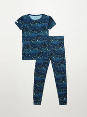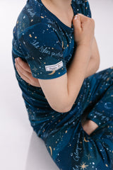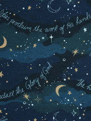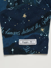 Let the stars spark wonder and the Word stir worship. This celestial print is designed to inspire awe in God's majesty and creativity. With hand-drawn planets, stars, and moons in soft, dreamy colors, this pajama set invites children to reflect on the greatness of God every night.