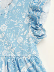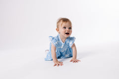 This short sleeve twirl dress with built-in bodysuit lets even the littlest girls (NB–24M) join in the joy. With gentle sky-blue tones and sweet bird illustrations, it’s perfect for carefree summer days full of wonder and movement.