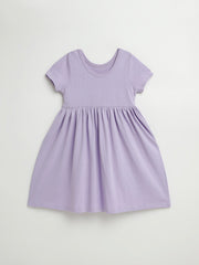 Lilac Prayer Pocket Short Sleeve Twirl Dress Cotton