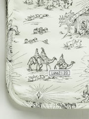 • Christ-centered design — timeless toile scenes of Bethlehem and the Nativity