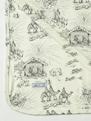 The print brings Bethlehem to life with Baby Jesus in the manger, Mary and Joseph by His side, shepherds with their sheep, and the wise men following the star. It’s a peaceful, joyful design that surrounds baby in comfort while pointing hearts back to the true reason we celebrate.