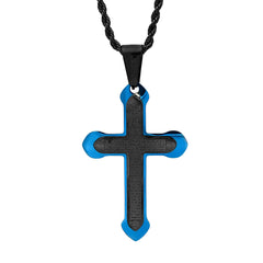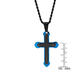 Giving the everyday cross pendant a makeover, this two-toned cross necklace pendant features a large black cross accented with a blue ion plated edges..