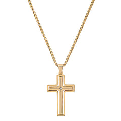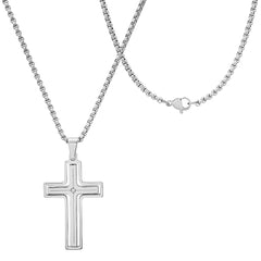 Elegant stainless steel spinning cross pendant, accented with sparkling simulated diamonds for a refined touch.
