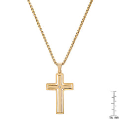 Black Ip Stainless Steel And Simulated Diamond Spinning Cross Pendant