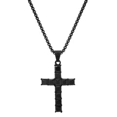 Black Ip Stainless Steel And Simulated Diamonds Cross Pendant
