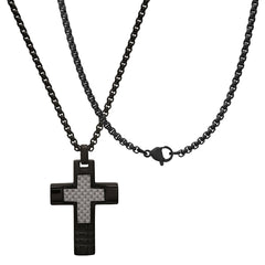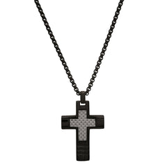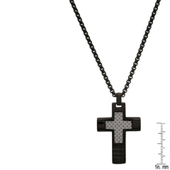 Black Ip Stainless Steel And White Carbon Fiber Cross Pendant