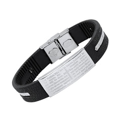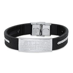 Black Rubber And Stainless Steel Our Father Prayer Ridged Bracelet