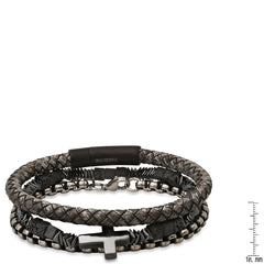 This Gray Braided Leather/Black Ip Stainless Steel, Stainless Steel Round Link And Hematite/Lava Beaded 3Pc Bracelet Set mixes multiple different stones and metal to create a unique and tough bracelet set. This bracelet is a perfect stack-starter, or addition to an already existing stack. This bracelet fits all wrist sizes comfortably.