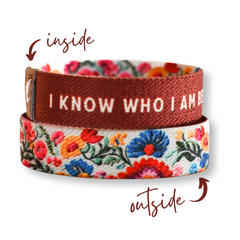 Embrace your true identity with the "I Know Who I Am" Kids TruthBand. This faith-filled accessory features a beautiful floral design and a powerful message inside that reads