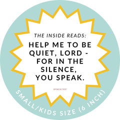 In a society filled with diversions that can lead our little ones away from the faith, this wearable truth anchors their spirit, helping them remember to pause and take time to sit in the classroom of silence and listen for His voice.