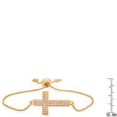 Ladies 18K Gold Plated Brass Simulated Diamonds Cross Drawstring Bracelet