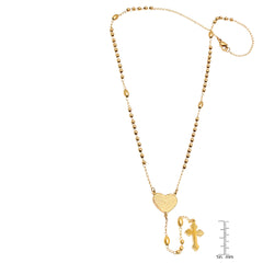Ladies 18k Gold Plated Stainless Steel Padre Nuestro Prayer Heart Rosary Necklace