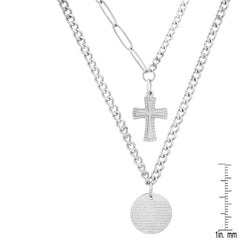 Ladies stainless steel layered thin cuban and paperclip link necklace with "Our Father" prayer and cross charms