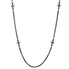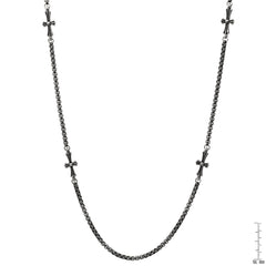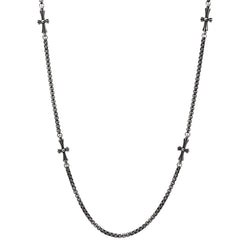 Oxidized Stainless Steel Round Link Chain And Crosses Necklace