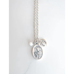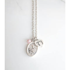St. Gerard is the Patron Saint of pregnancy and pregnant women so this necklace will make a perfect baby shower gift! You can customize the bead color of the necklace, select either a pink, blue, or white bead - or no bead at all. You can also choose either an 18in or 24in chain. The necklace is made with a St. Gerard medal, which is made in Italy and reads "Pray for Us" on the back, and a heart charm with two tiny footprints.