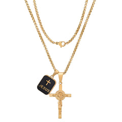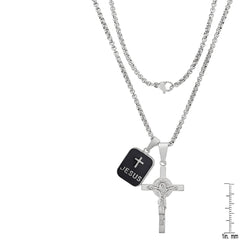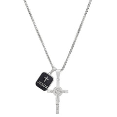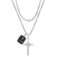 Striking stainless steel dog tag and black enamel crucifix pendants — a modern, powerful symbol of strength and faith.