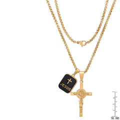 - Black Enamel Dog Tag Pendant and Crucifix Pendant