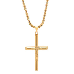 Crafted with meticulous attention to detail, this crucifix cross is made of stainless steel. The gold plating offers a radiant and luxurious finish, enhancing the beauty of the pendant and making it a standout accessory.
