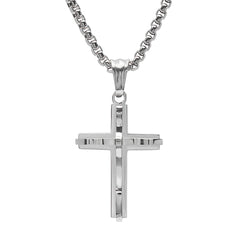 A sleek expression of layered faith, this stainless steel double cross pendant blends modern sophistication with timeless symbolism.