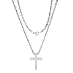 Sleek and meaningful, this small square stainless steel cross features the Lord’s Prayer—faith and style in perfect harmony.