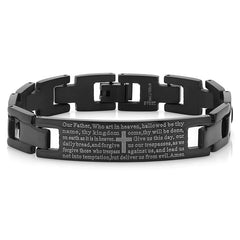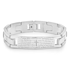 Experience the beauty of faith with our Box Chain Our Father Prayer ID Bracelet. Crafted with durable stainless steel, this bracelet features a ID engraved with powerful words of the Lord's Prayer.