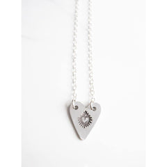 Classical elegance is the essence of this necklace. Handmade from .960 sterling silver , this heart-shaped pendant has a Sacred Heart of Jesus symbol impressed upon it. It is perfect for Catholic brides on their wedding day or to dress up any outfit. The pendant measures 23mm x 20mm and the delicate sterling silver chain is 16in long.