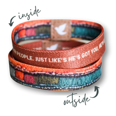 Introducing our empowering "Trust God with Your People Women’s TruthBand," a beautiful accessory designed to inspire women to entrust their loved ones to God's care. This unique TruthBand features a captivating jade, burnt orange, olive, and teal bohemian friendship bracelet print on the outside, symbolizing unity and connection.