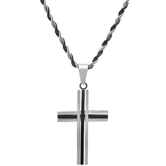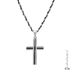 Sleek and modern, this two-tone cross pendant blends black IP and stainless steel for a bold, edgy statement of style and strength.