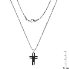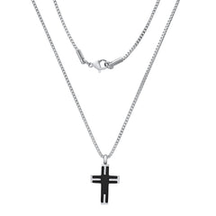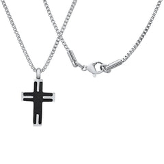 A sleek clash of dark and light, this Two-Tone Black IP & Stainless Steel Textured Small Cross Pendant packs serious style in a bold, compact design.
