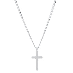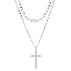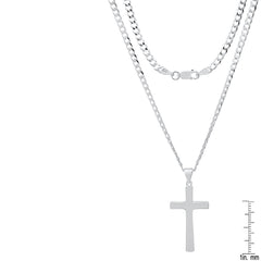 Unisex Sterling Silver Cuban Super Flat Chain And Cross Pendant