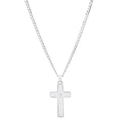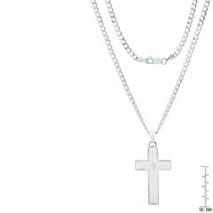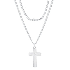Unisex Sterling Silver Cuban Super Flat Chain And Lord'S Prayer Cross Pendant
