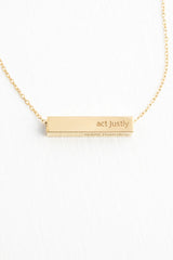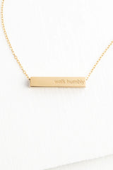 Each Walk Humbly Bar is engraved with a powerful call to action on a simple, adjustable 14k gold-plated chain. Engraved with the words “Act Justly, Love Mercy, Walk Humbly” it makes the perfect gift for the world changers in your community! As you wear and gift the Walk Humbly Gold Bar, you partner with us to lift up the voices of women and girls escaping exploitation. Wear hope, give hope.