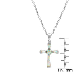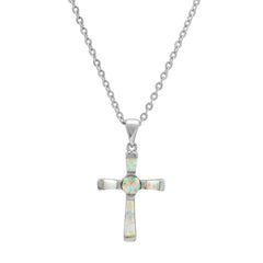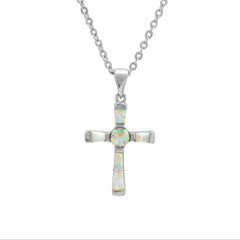 Ladies 18k white gold plated brass genuine opal cross necklace