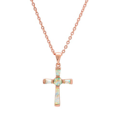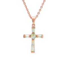 Women's Brass Genuine Opal Cross Necklace