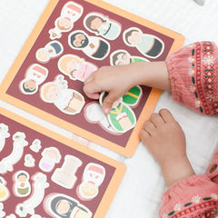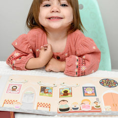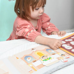 When playtime is over, children can match the magnets back to their pictures for easy, organized storage. The whole book folds back up and is self-contained and ready to go for the next time!
