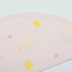 The prayer is printed along the top rounded edge so it won't be covered by plates, bowls or snacks- keeping the prayer in sight throughout the meal to make it easier to learn.
