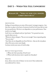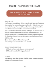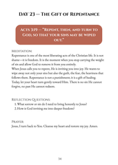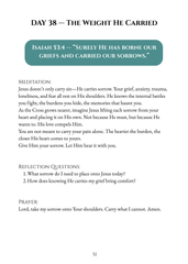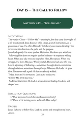 Each day offers a carefully crafted rhythm of Scripture, a contemplative meditation, thoughtful reflection questions, and a closing prayer. Together, these elements create space for honest self-examination, personal healing, and a renewed encounter with Christ’s mercy. This is not simply a book to read, but a guide to pray with—designed to meet you in the quiet moments where God speaks most clearly.