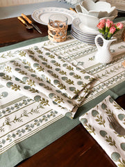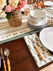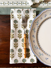 PRODUCT DESCRIPTION: These napkins are 20” square. They are hand block printed on percale, which is a wrinkle-resistant, very soft but durable fabric.