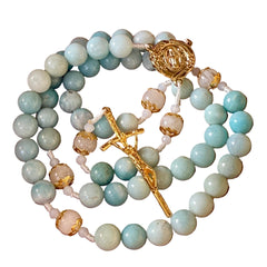 Handmade Gemstone Rosary Amazonite & White Moonstone Beads Bundle