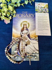 • Custom Rosary Brochure with all 20 mysteries & heavy card stock & custom 15 Promises of the Rosary bookmark