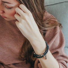 This bracelet is named Memento Mori which means "Remember your death." This phrase comes from early Christianity. Many saints from that time are known to have kept a skull on their desk or amongst their belongings simply to remind them of death. Even some early Christians greeted one another with this phrase. The phrase is simply to remind people of their death and call them to think about how their living today. Are we preparing for our death? Are we preparing for eternity?