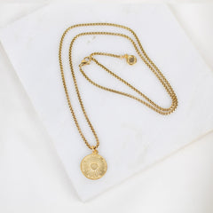 - Choose between a stainless steel gold-tone box chain (24" + 1" extender) or a stainless steel gold-tone rope chain (18" + 2" extender)