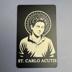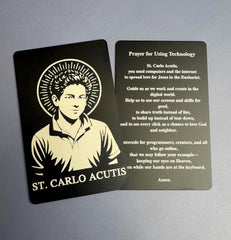 Celebrate the life and faith of newly canonized Saint Carlo Acutis with this beautifully designed prayer card: this Carlo Acutis Prayer Card features a full image of the saint with a technology prayer on the back, making it a meaningful confirmation gift under $20 or religious present for a son. A unique Catholic saint card with display stand option, perfect for an office desk, home altar, or as a daily prayer keepsake for a Catholic tech professional.