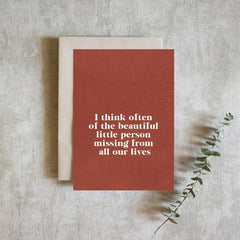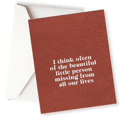 The outside of this card says: "I think often of the beautiful little person missing from all our lives."