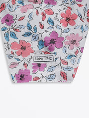 • Whimsical Floral Design: Features a dainty, hand-drawn floral print in soft purples and pinks, interwoven with the gentle reminder that "God is Love".