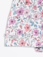 This Short Sleeve Twirl Dress Bodysuit is made from our high-quality 100% Premium Cotton fabric, designed for lasting softness and wear. The "God is Love" print features exclusive floral artwork inspired by 1 John 4:7-8. This piece is machine washable and built to maintain its vibrant colors through every adventure.