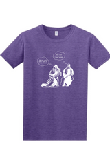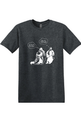 Step into the biblical narrative with our "John Runs" T Shirt, inspired by John 20:4. This humorous design depicts the race to the empty tomb between John and Peter, with thought bubbles capturing their competitive banter… or at least what we imagine it to be! Perfect for those who appreciate a playful nod to scripture, this shirt is sure to spark conversations about faith and friendship. Perfect for Easter basket gifts! Get ready to share the joy of the Resurrection with a dash of humor!