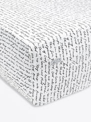 This fitted sheet is made from our high-quality, 100% Premium Cotton fabric. It features our exclusive "Love One Another" print, which displays the full, custom-written text of the fundamental passage 1 John 4:7–19 in an elegant script. The sheet is designed for a snug fit with elastic edges.