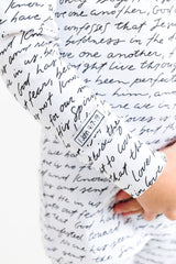 Introducing our stunning 2026 signature print, "Love One Another," based on the fundamental Christian passage 1 John 4:7–19, which deeply focuses on God and His love. This special design was created to literally "wrap your family in the Word of God," featuring the full Scripture text, which was custom-written by an artist exclusively for Holy Pals. Crafted from our beloved, cozy, and breathable 100% Premium Cotton, these Christian family pajamas offer the ultimate in comfort and softness for bedtime. It is heartwarming to be wrapped literally in this beautiful, intentional design, which took months to perfect. This Scripture sleepwear serves as a constant, comforting reminder that “God is love” and we are called to “love one another.”